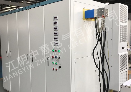 中频感应加热设备中频电源由可控硅元件组成的交-直-交变频电源,将三相工频电变化成加工所需的特定频率的单相交流电,提供能源给加热炉体,将坯料加热。谐振电容器柜:高频大容量的电热电容器,与加热炉体组成LC谐振回路,产生较强的磁场来加热炉体中的坯料。加热用感应炉:由特制的电解铜(矩形)管绕制成特殊的形状,中频电源提供的中频电流通过时,产生所需的磁场,在坯料中产生相应的感应电流(涡流),使工件自身被涡流加热到要求的温度。